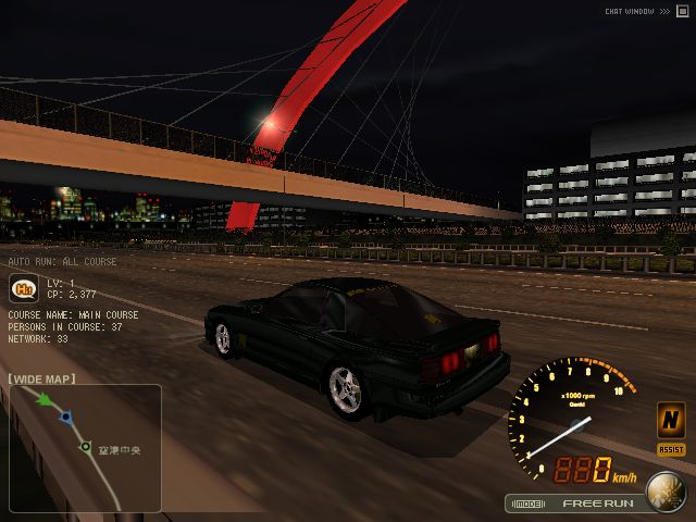 ある日、特定のNPCを待ちかまえる(NPCによってCPやボーナスが異なるので)ために、湾岸線の待避スペースで停車していると、チャットウィンドウに「AさんがBさんに勝った」(仮名(^^;))旨の表示。初めは気にしていなかったんですが、対戦場所が近かったため、続いてローカルチャットの文字が流れてきました。Aさん曰く「B、遅いな」(AさんとBさんはよく知った仲のようです)。そして目の前をAさんの車が自動走行で流れていき、続いてBさんの車が・・・なんと「哀(泣き)」のフェイスマーク付き。爆笑しました(失礼(^^;))。おそらくこれを見ていたのは自分ぐらいでしょうが、はまりすぎですよ。もちろん爆笑事例はこれだけでなく、日々いろいろな会話やバトルが繰り広げられております。面白い!