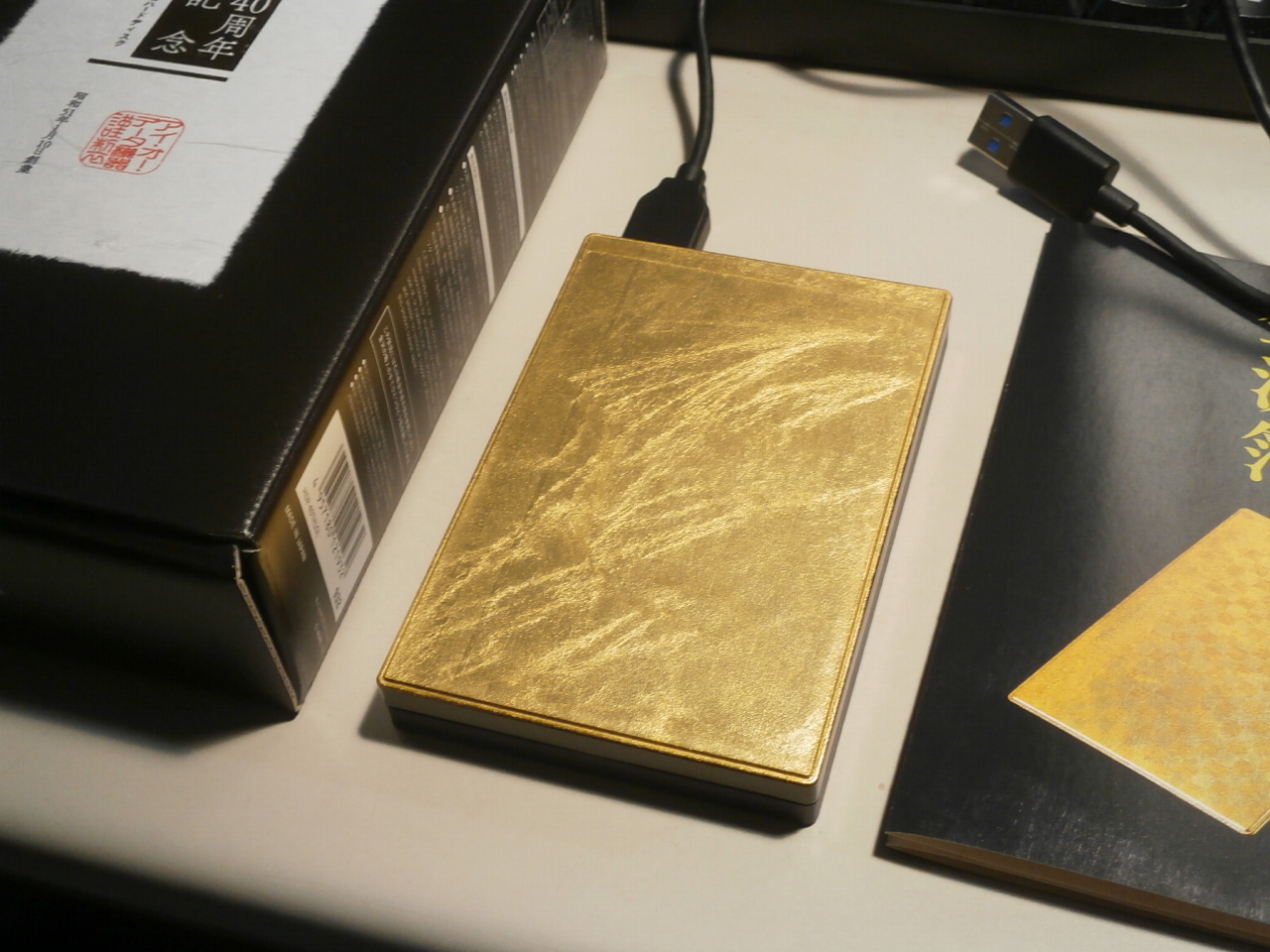 IOデータ機器の40周年記念製品のうちの一つ、 金箔ポータブルハードディスクドライブを購入しました。